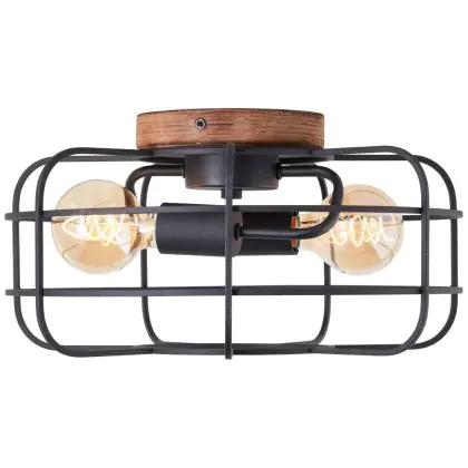 Beschreibung Brilliant Gwen Deckenleuchte Metall Holz Schwarz | 400mm - Geeignet für 2x E27