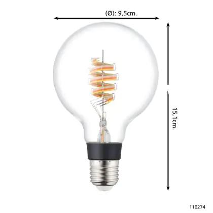 Die Eglo Connect.Z Smart LED Globe E27 Fadenlampe Klar 4.9W 400lm - 830 Warmweiß + RGB | Dimmbar - Ersatz Für 40W ist eine effiziente E27 LED-Lampe mit Retrodesign und der perfekte Ersatz für Ihre konventionellen 40W Lampen mit E27. Zudem strahlt sie Licht in der Farbtemperatur 3000K - Warmweiß + RGB aus und punktet durch eine lange Lebensdauer.
