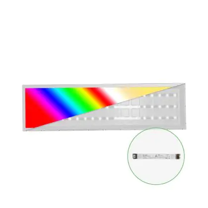 Das LED Panel Backlit 40W 3935lm 827-865 CCT + RGB | 120x30cm - UGR ist ein modernes LED-Panel, welches Licht in der Farbtemperatur 2700K - 6500K Tunable White + RGB ausstrahlt und mit einer langen Lebensdauer punktet. Mit dem hochwertigen Panel, welches ideal als Allgemeinbeleuchtung verwendet werden kann, sparen Sie nicht nur Energiekosten, sondern steigen auch auf eine langlebige und flackerfreie Lichtlösung um.