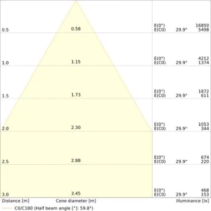 Der LED-Deckenspot kommt mit der Farbtemperatur 3000K - Warmweiß daher. Als Faustregel gilt: Je niedriger der Kelvinwert, desto gemütlicher wirkt das Licht.
