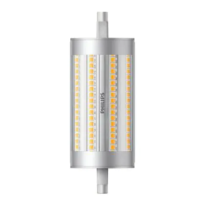 Die Mehrfachpackung 10x Philips Corepro LED Lineair R7s 118mm 17.5W 2460lm - 840 Kaltweiß | Dimmbar - Ersatz Für 150W ist eine effiziente R7s LED-Lampe und der perfekte Ersatz für Ihre konventionelle Halogen-Stablampe mit 150W. Zudem strahlt sie Licht in der Farbtemperatur 4000K - Kaltweiß aus und punktet durch eine lange Lebensdauer.