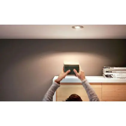 Der GU10 LED-Strahler von Philips weist eine Farbtemperatur von 2700K - Extra Warmweiß auf. Sein Anwendungsgebiet können Sie somit ganz einfach ermitteln: Lampen mit einem niedrigen Kelvin-Wert (2.000 K - 3.000 K) eignen sich ideal für Umgebungen, die Sie mit einer gemütlichen Beleuchtung versehen möchten, zum Beispiel ein Hotel, eine Bar, ein Restaurant oder die eigenen vier Wände.