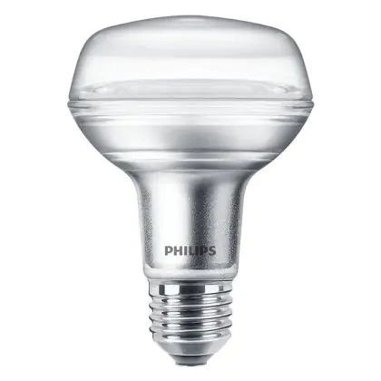 Die Philips CorePro LEDspot E27 Reflektor R80 4W 827 36D ist der ideale Ersatz für herkömmliche Halogenstrahler mit 60 Watt und hat eine extra warmweiße Farbtemperatur. Der LED-Strahler ist dank seines schmalen Lichtkegels die ideale Akzentbeleuchtung. Zugleich reduzieren Sie Ihre Stromkosten erheblich.