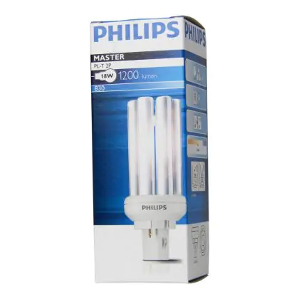 Philips PL-T 18W 830 2P spendet ein warmes und einladendes Licht, entsprechend einer Farbtemperatur von 3000K. Diese Lampen sind weit verbreitet in Schulen, Büros und Kantinen.