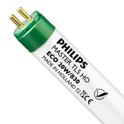 Die Philips MASTER TL5 ECO HO 20W - 830 Warmweiß | 55cm ist eine Leuchtstoffröhre mit einer Länge von 550 mm. Das Produkt hat einen Durchmesser von 17 mm. Die Röhre strahlt Licht in der Farbtemperatur 3000K - Warmweiß aus und punktet durch eine lange Lebensdauer.