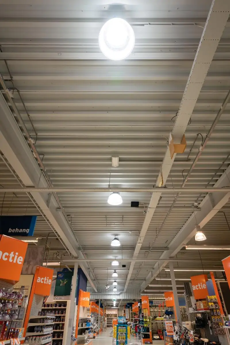 Mit den neuen, nachhaltigen LEDs ist der Gamma-Markt sowohl für Kunden als auch für die eigenen Mitarbeiter attraktiver. Die alte, konventionelle Beleuchtung verbrauchte 400 Watt pro Hallenleuchte, während ein neuer LED-Highbay nur 200 Watt verbraucht. Damit spart Gamma bis zu 50 % Energie! Und da die LED-Beleuchtung eine garantierte Lebensdauer von 100.000 Stunden hat, gibt es nur geringe Wartungs- und Austauschkosten. So konnten wir eine energieeffiziente und nachhaltige Beleuchtungslösung schaffen, die dem Geschäft ein einladene Atmospähre verleiht, in welcher sich Kunden und Mitarbeiter gerne aufhalten! Sind Sie neugierig auf das Ergebnis? Dann werfen Sie einen Blick auf die Fotos.