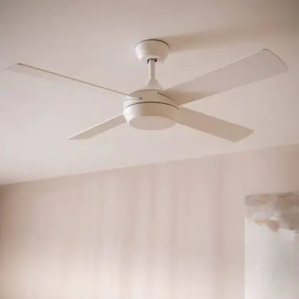 Dieser Ventilator kommt bewusst ohne integrierte Lampe aus. So bleibt Ihre bestehenden Lichtquellen unangetastet, und Sie behalten volle Kontrolle über die Beleuchtung in Ihrem Raum.